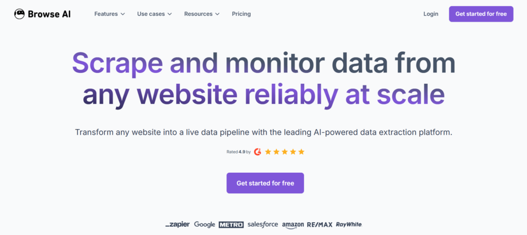 Browse AI emphasizes accuracy, repeatability, and automation. It supports pagination, change detection, and alerts, which helps teams stay updated as external data changes over time.