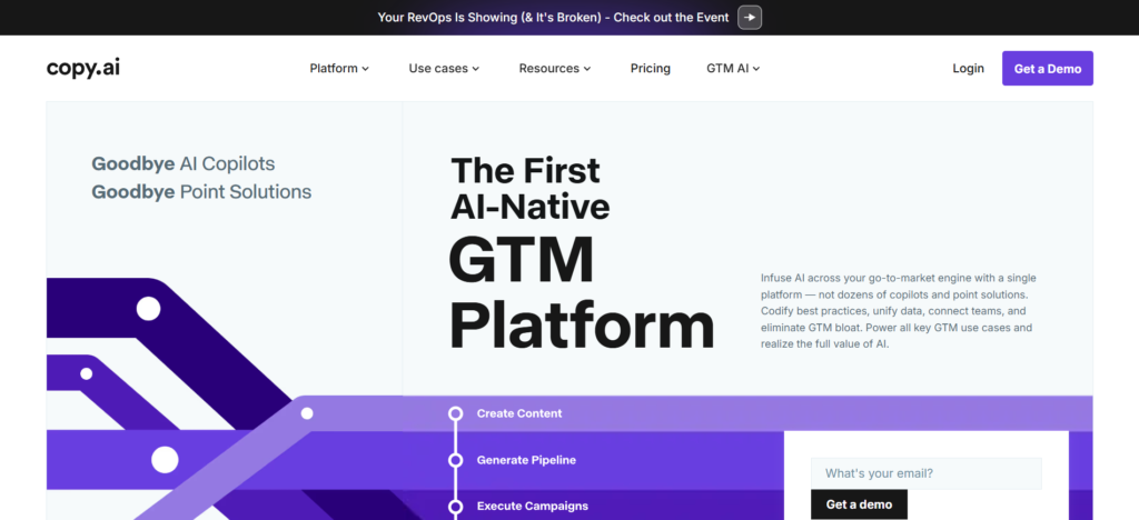 For teams running frequent campaigns and experiments, Copy.ai acts as a reliable assistant that accelerates execution without sacrificing flexibility.